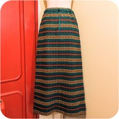 昭和レトロなグリーン×レッド×クリームイエローのエキゾチック柄マキシスカートです。
