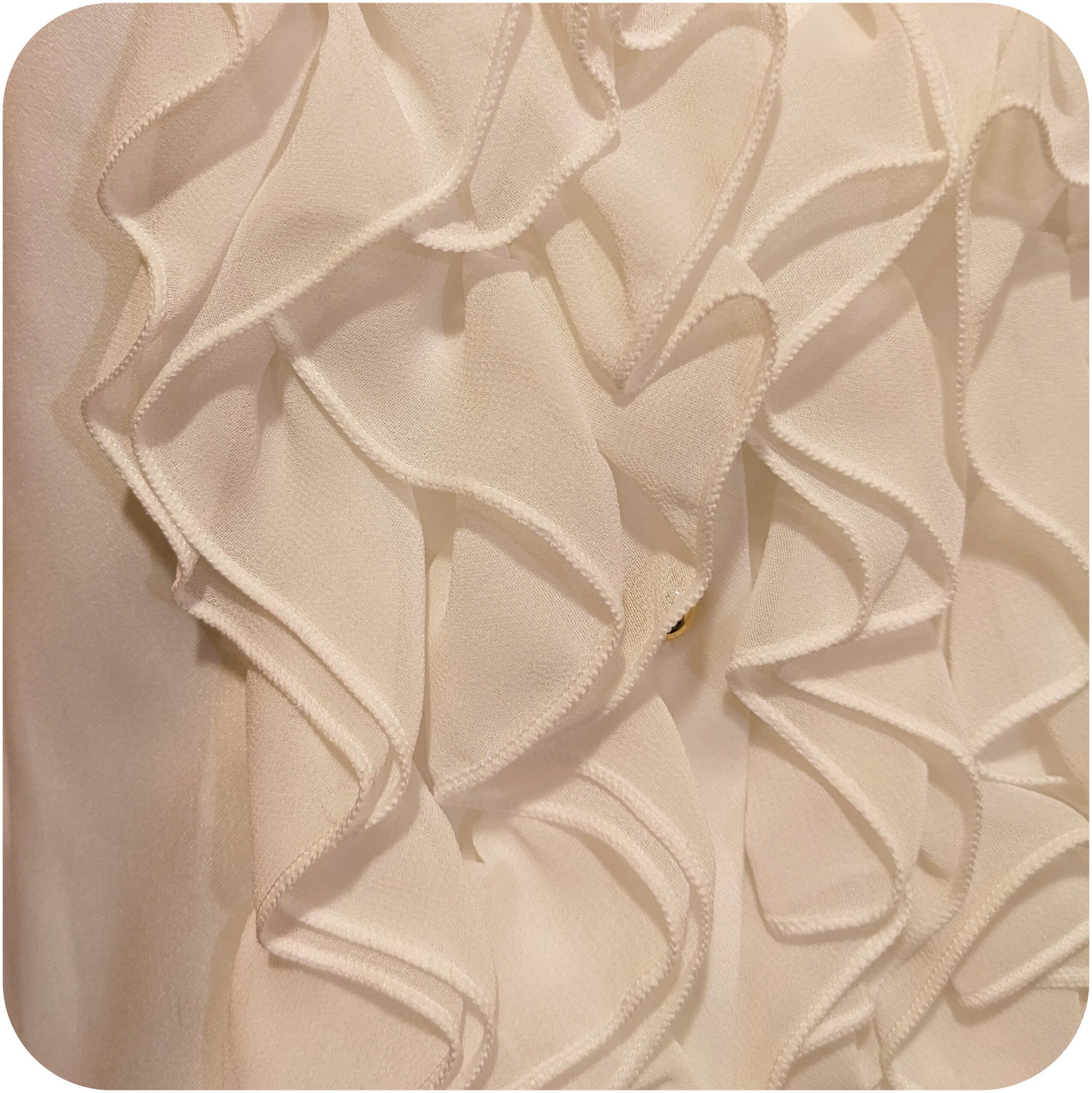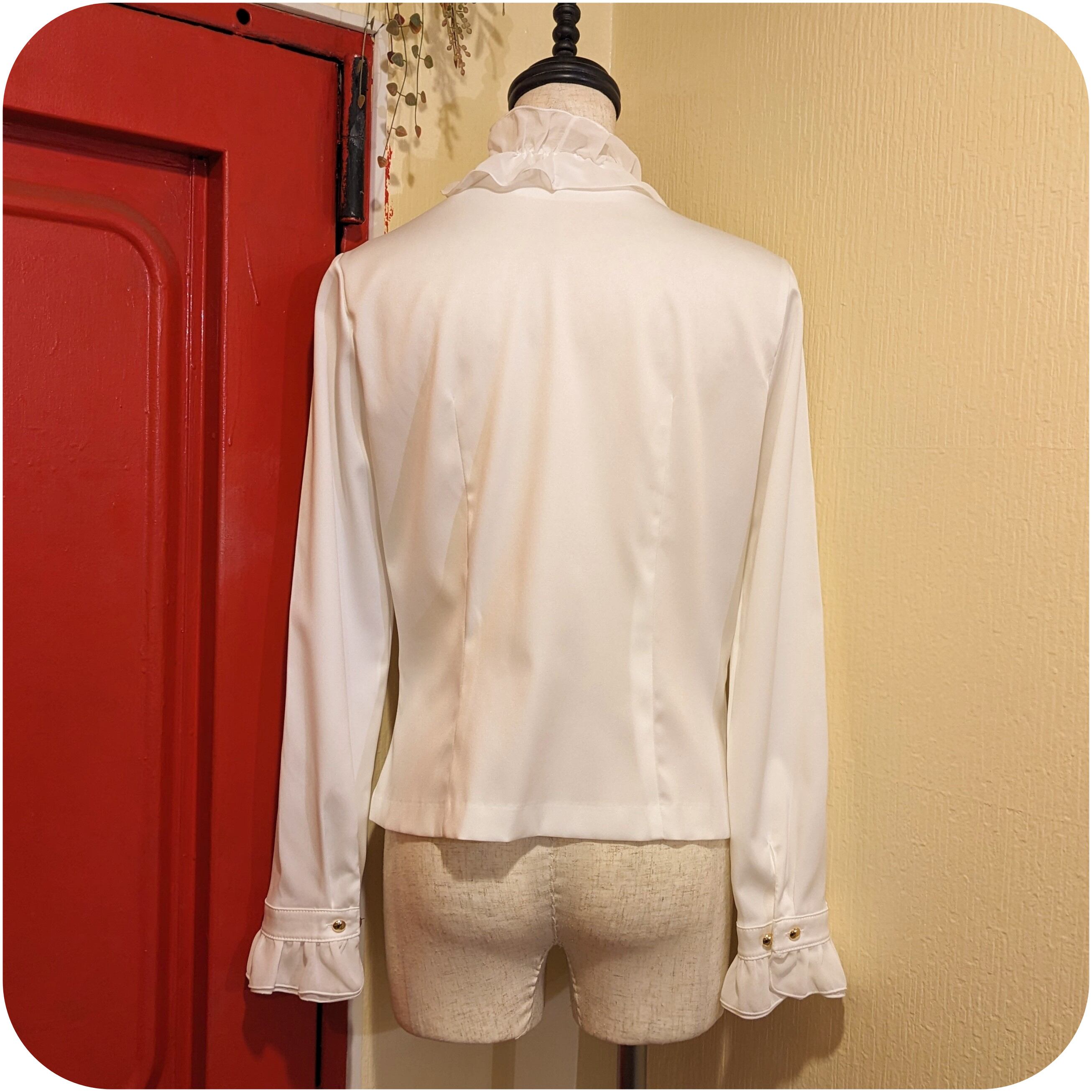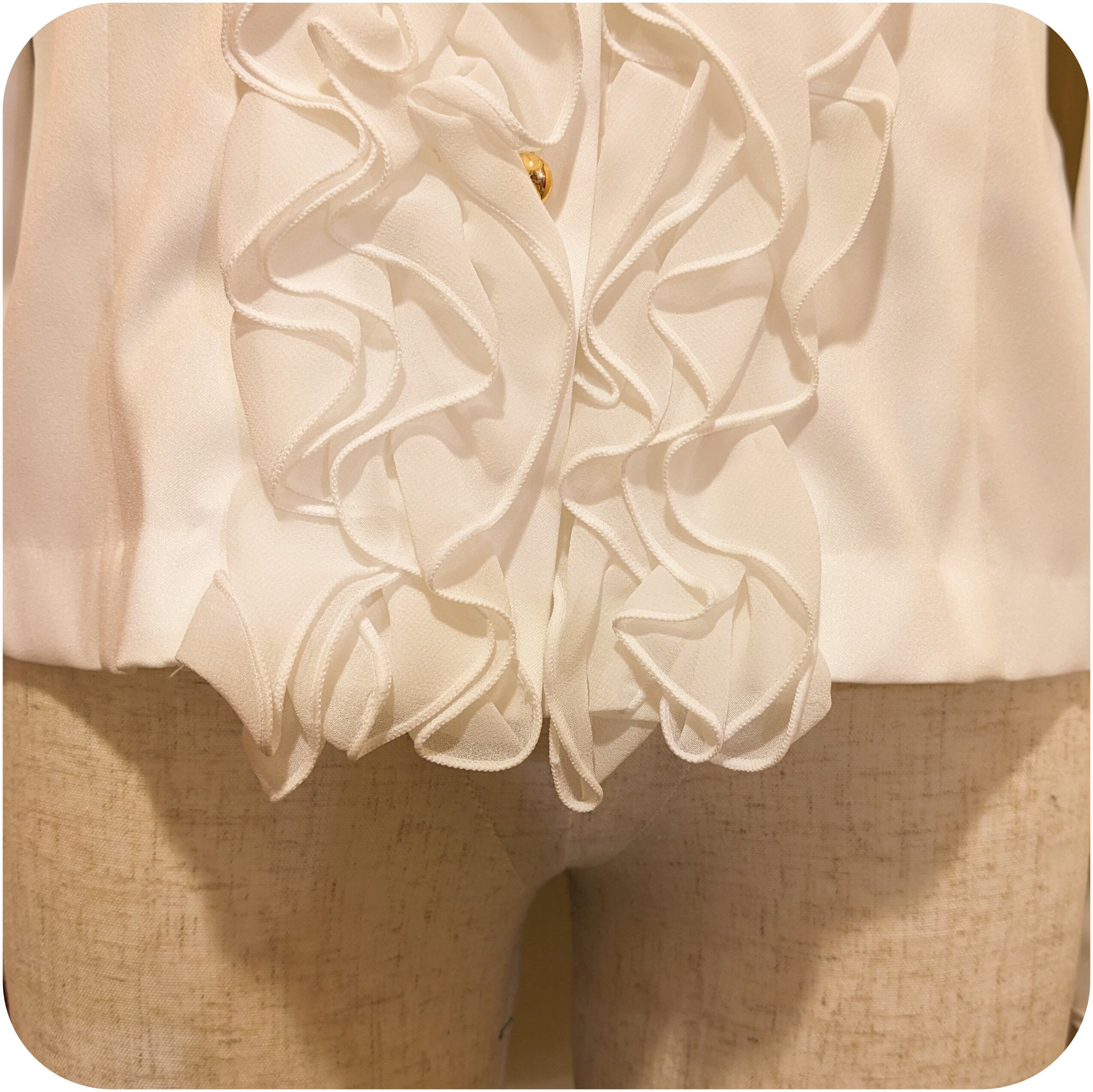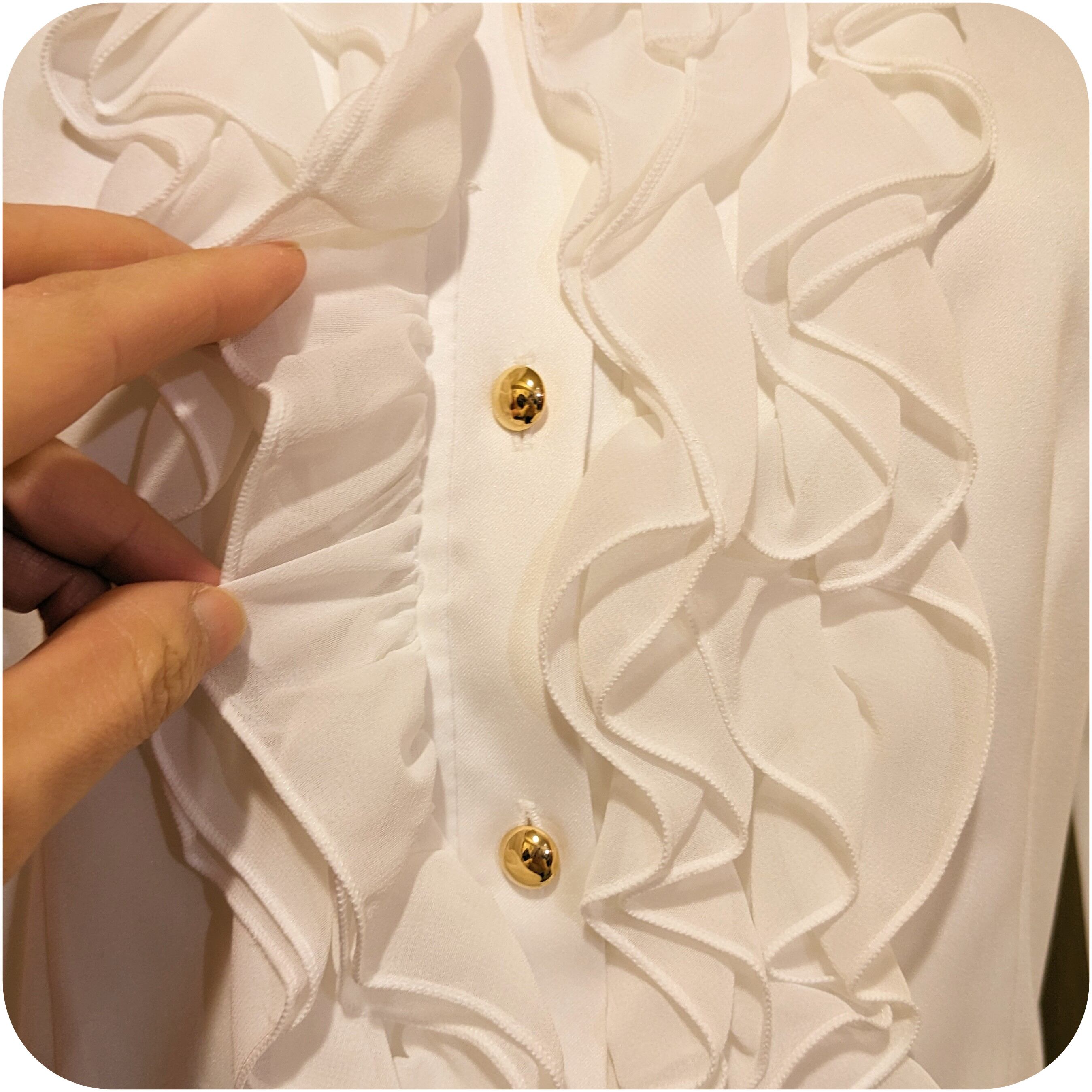 エレガントなホワイトのボリュームフリルデザインブラウス