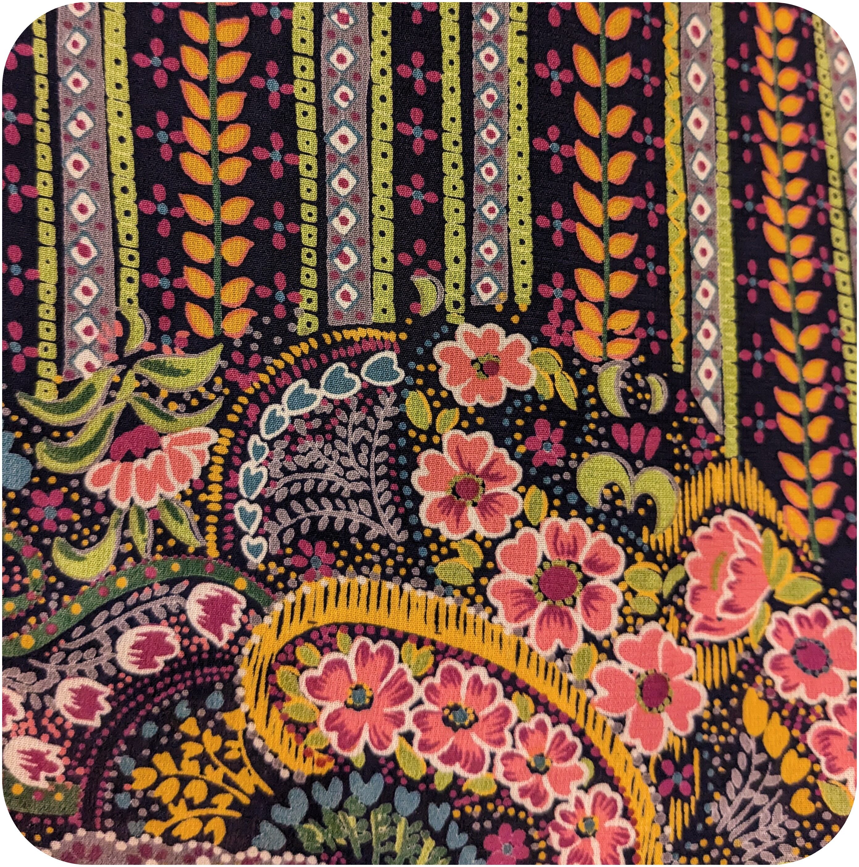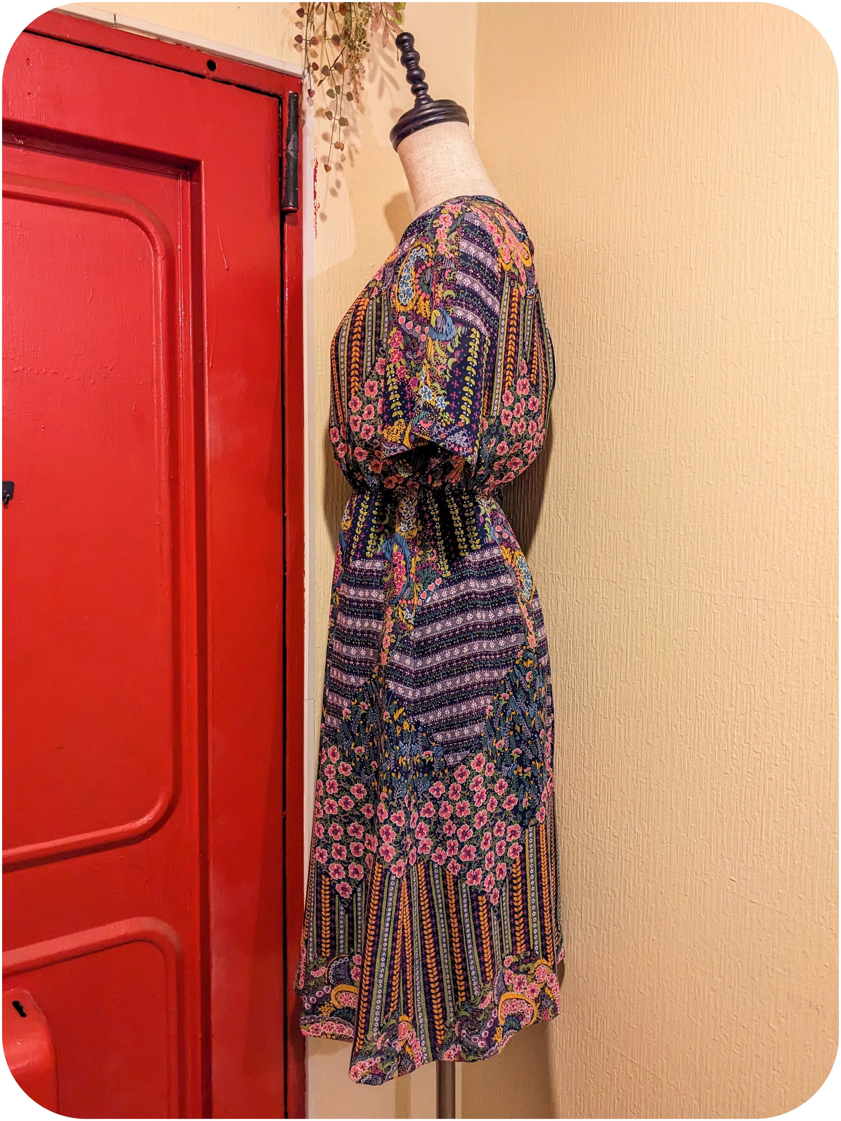 レトロなネイビー×ピンク×グリーンのフラワー柄ワンピース
