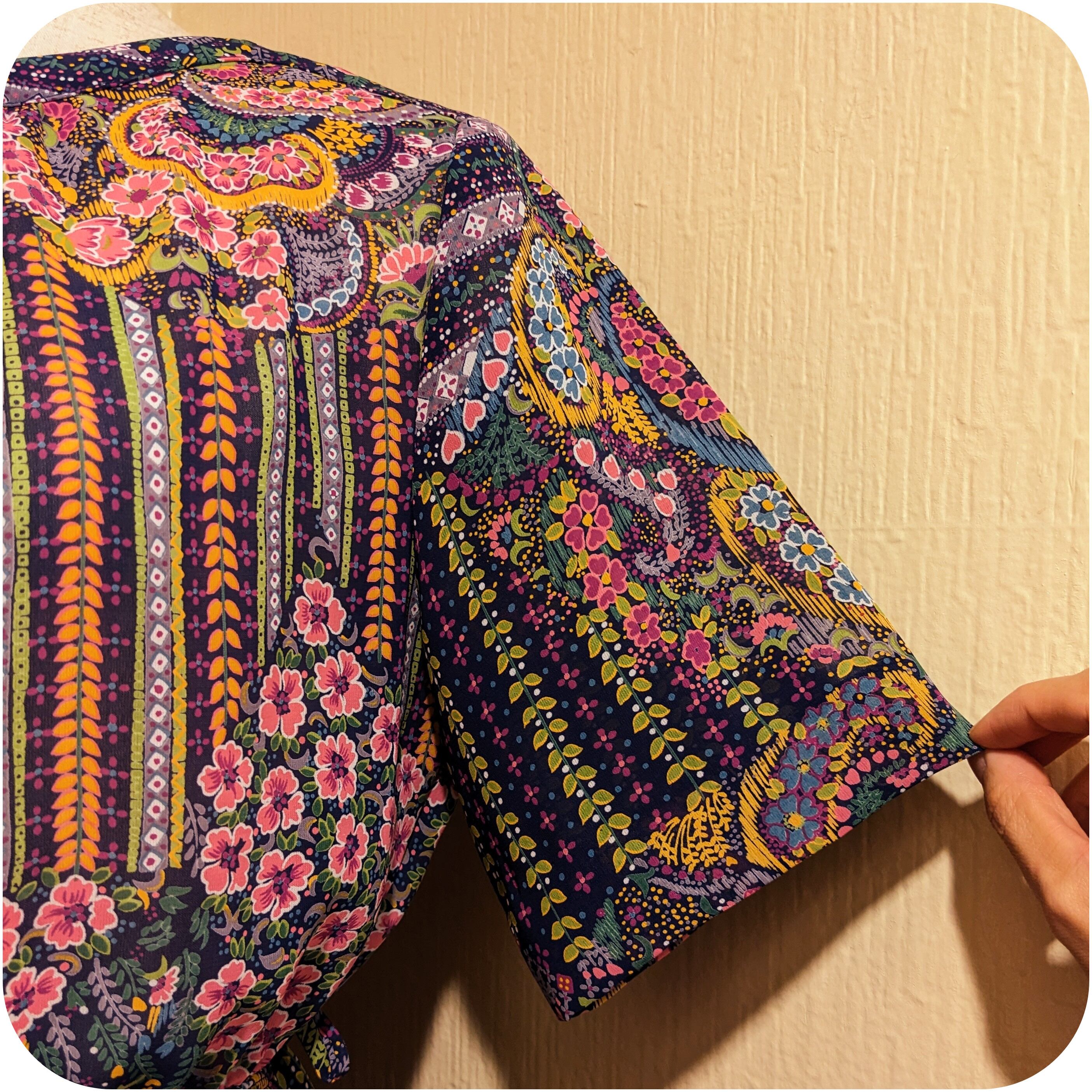 古着ならではの鮮やかな色合いのプリント柄と、シンプルながらもコンパクトで美しいシルエットがとっても素敵。
