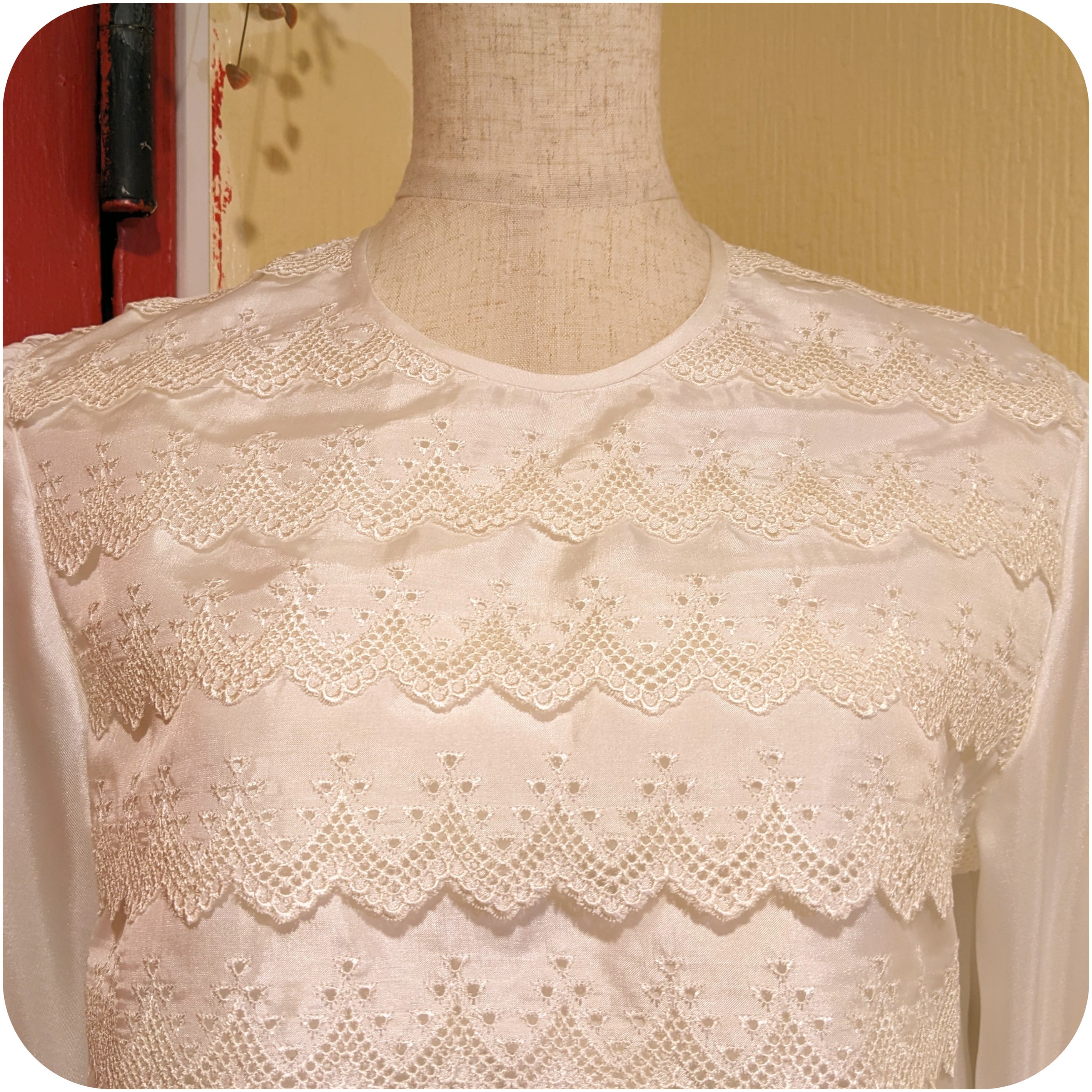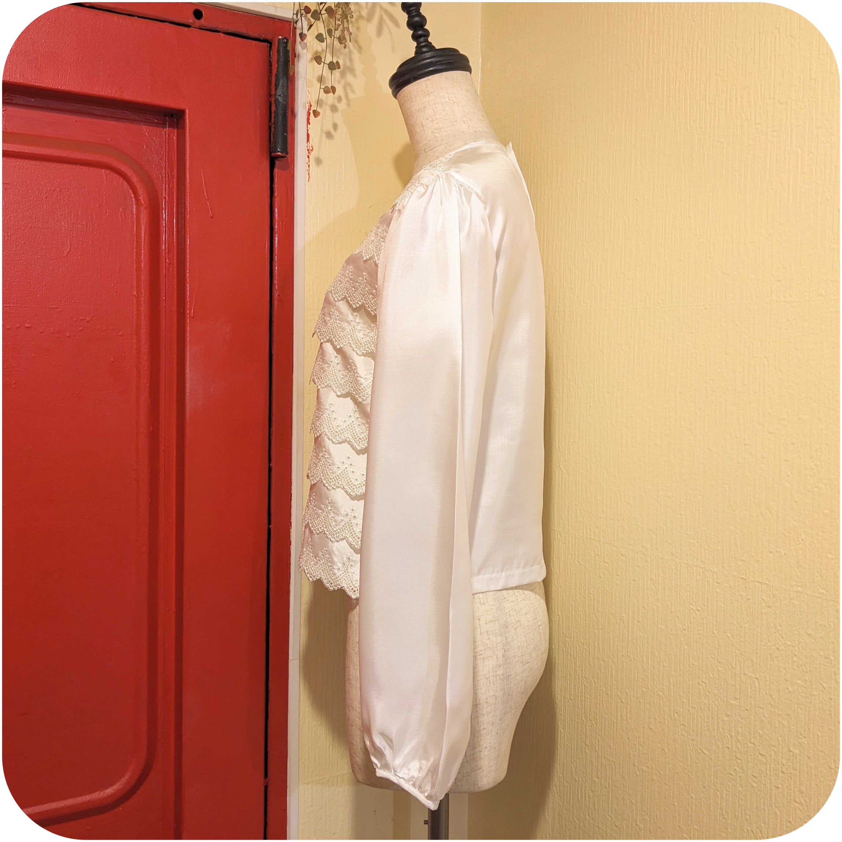 クラシカルなホワイトのカットワークフリルデザインブラウスです。