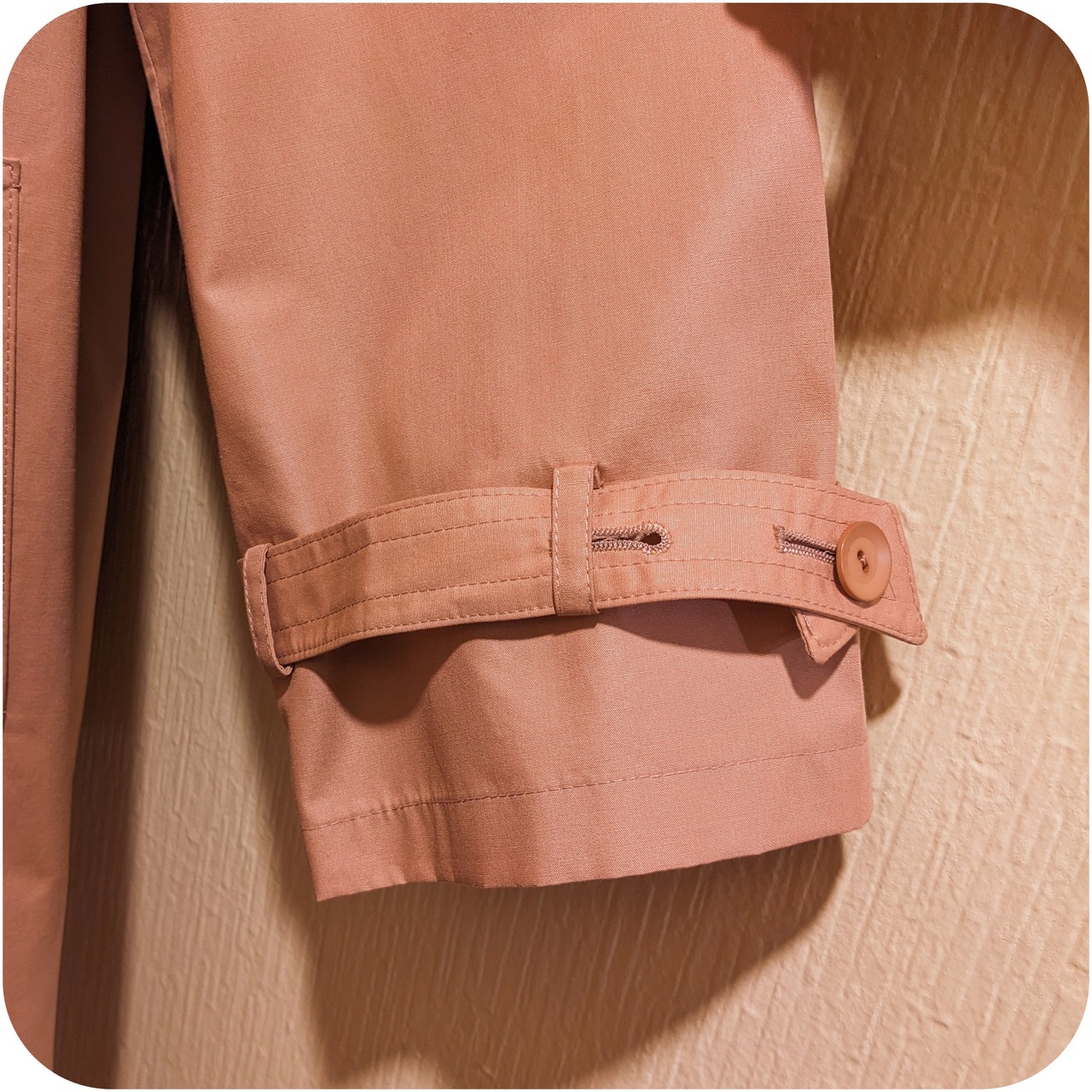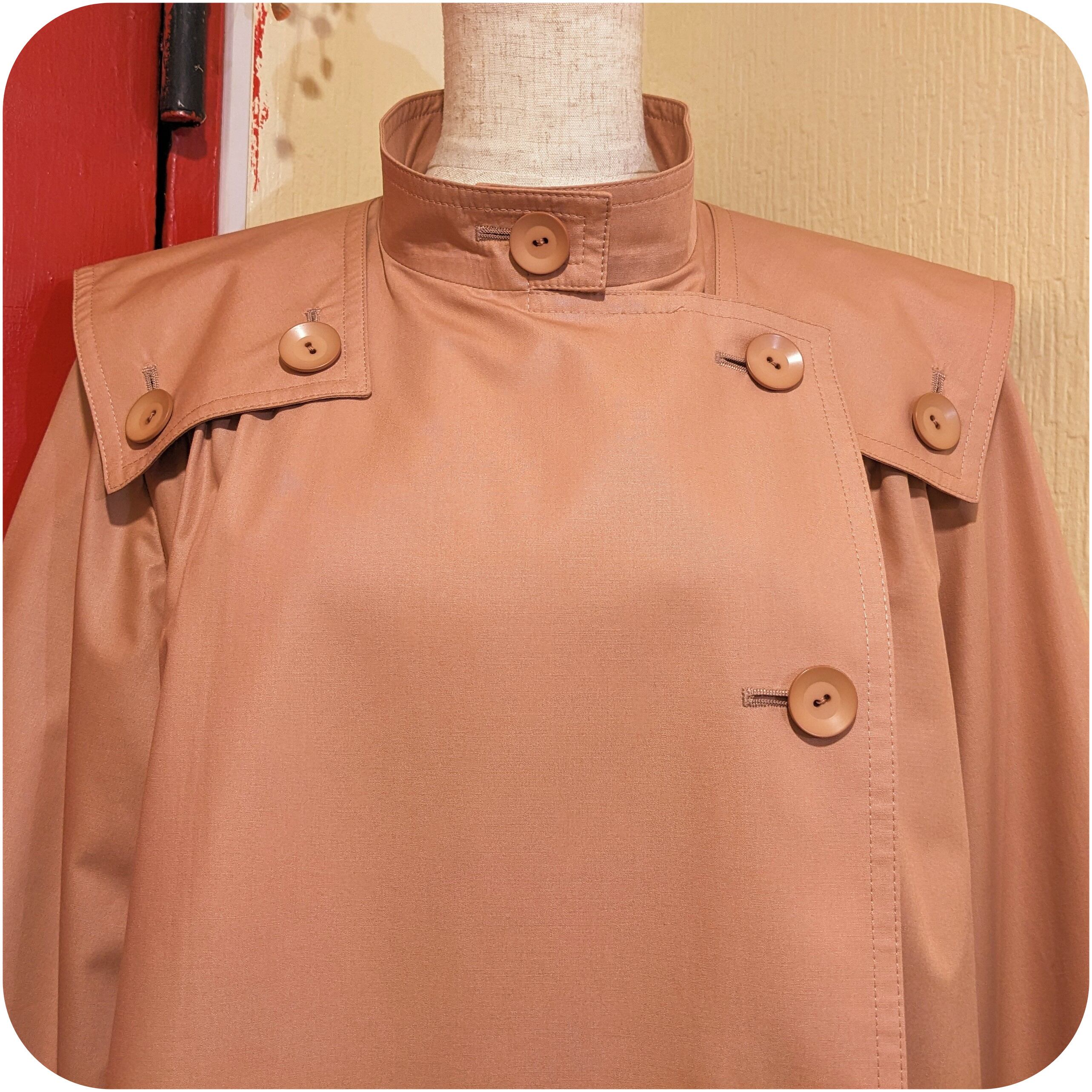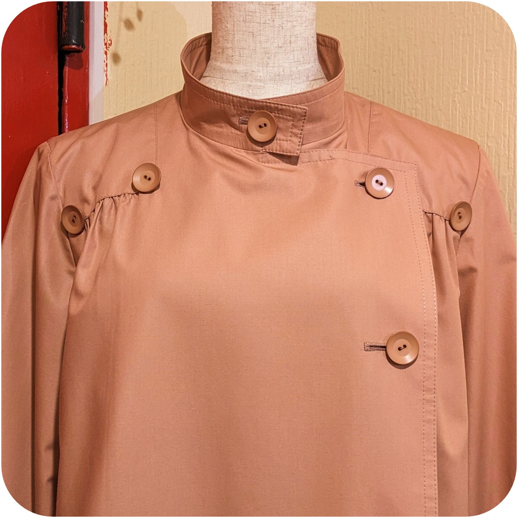 モードなサーモンピンクのボタンデザインコート