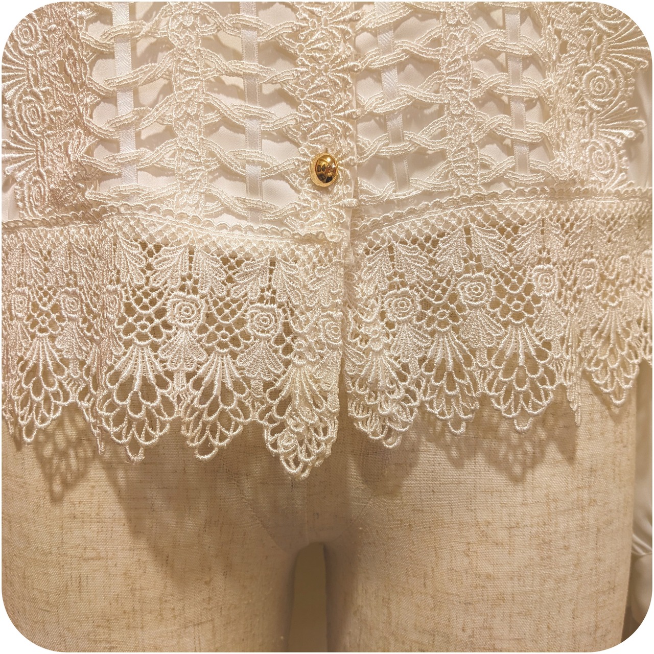 エレガントなホワイトのフラワーレースクロップドブラウスです。