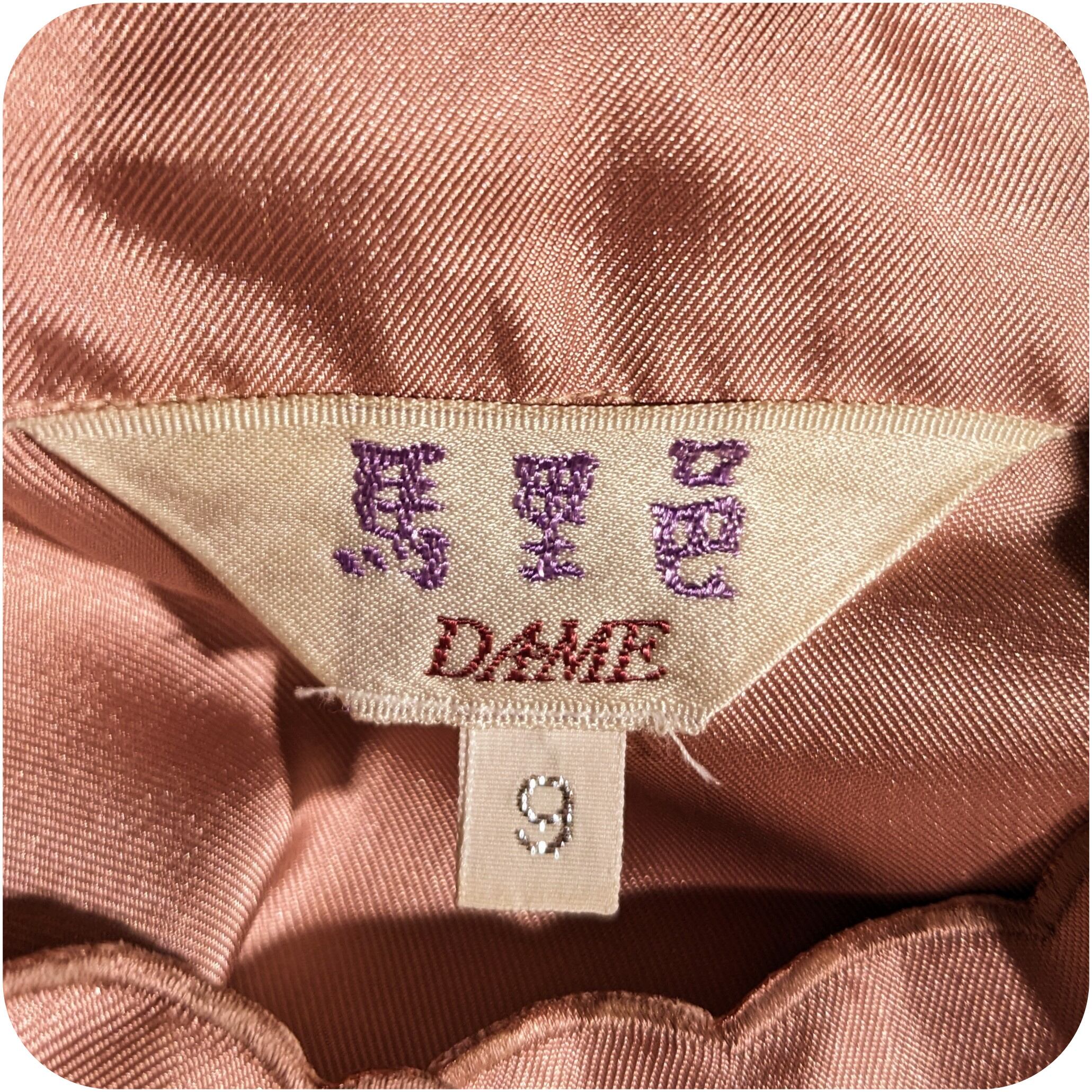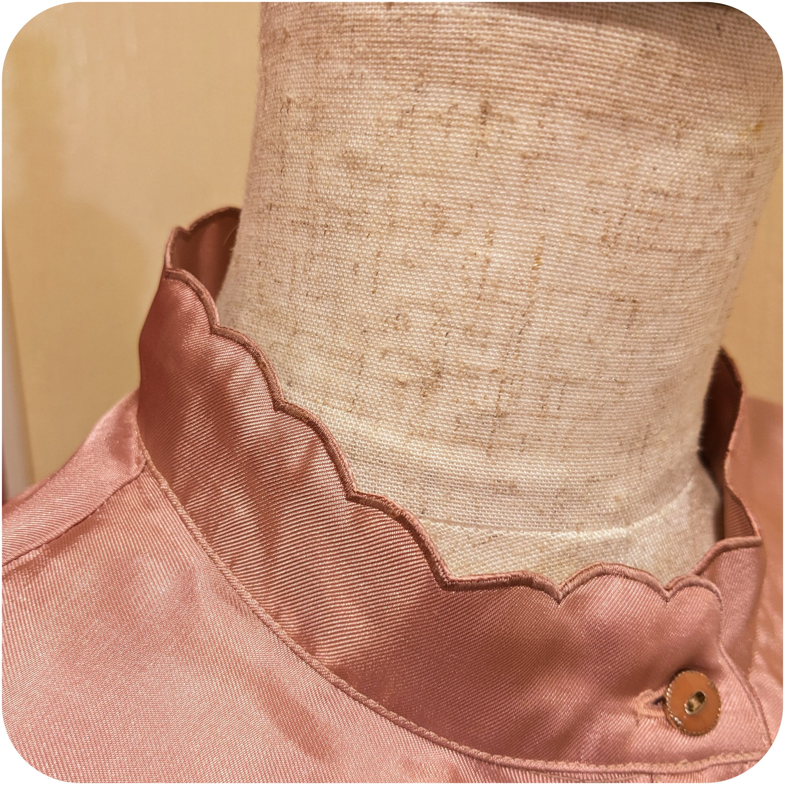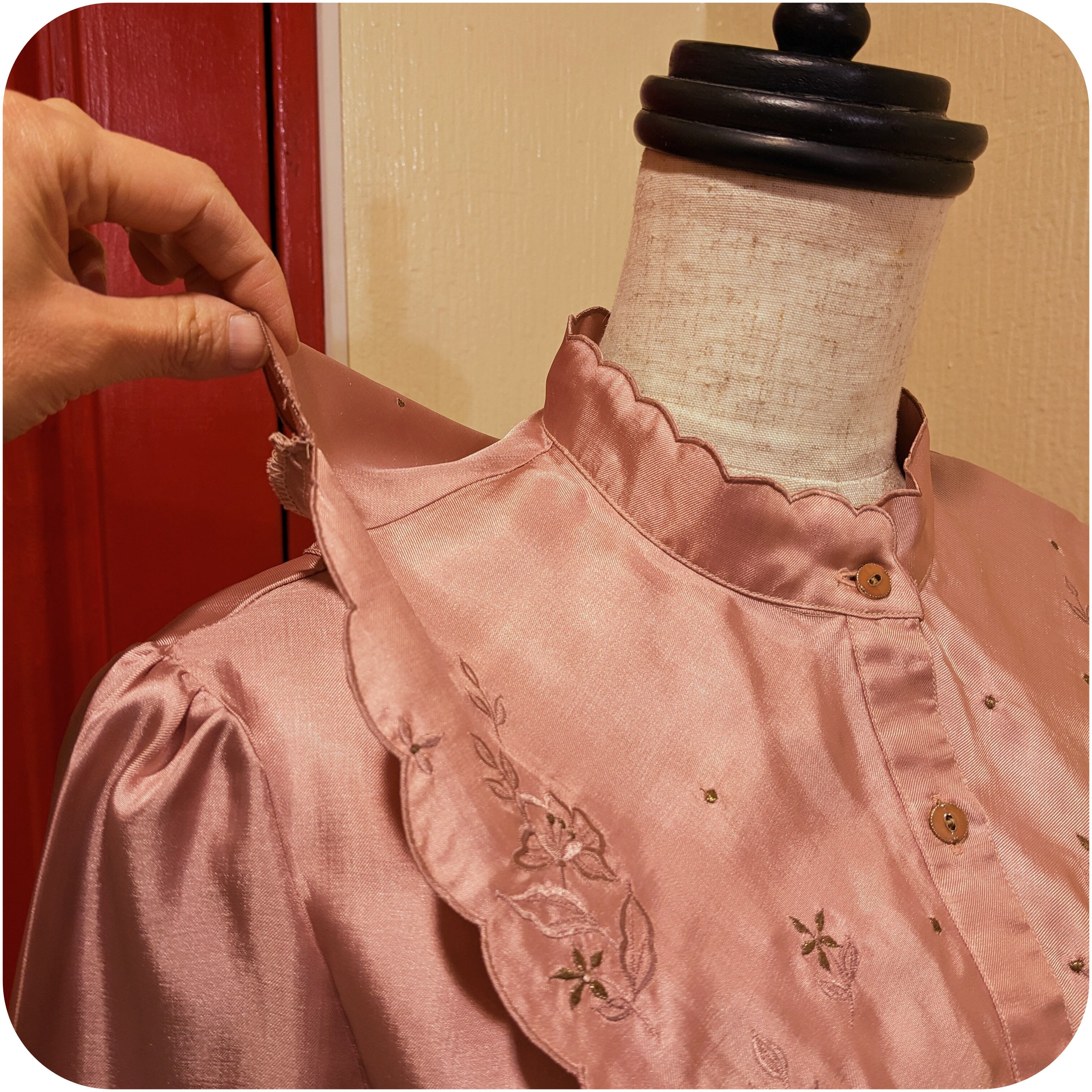 クラシカルなスモーキーピンクのフラワー刺繍入りブラウス