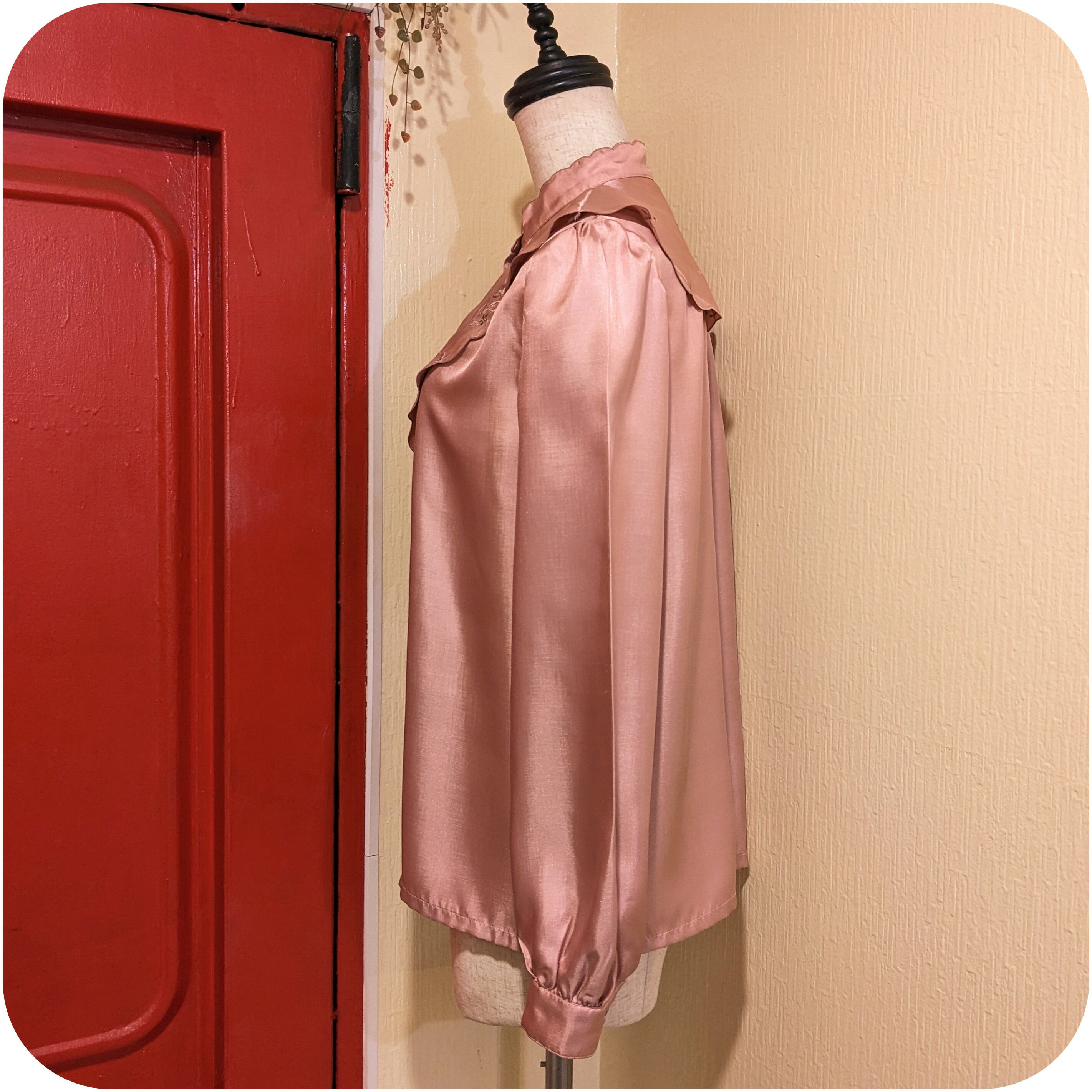 クラシカルなスモーキーピンクのフラワー刺繍入りブラウスです。